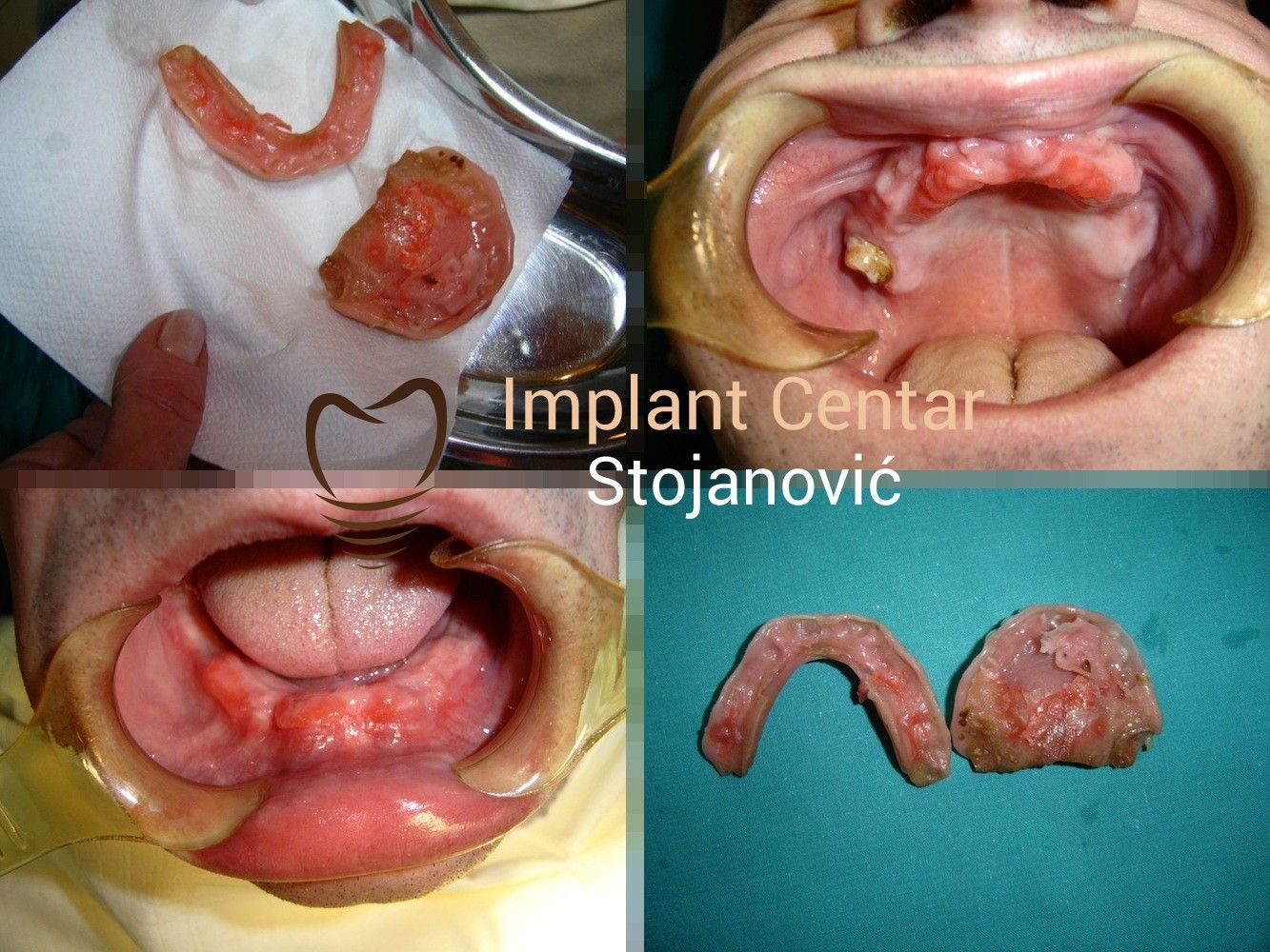 Pacijent iz Beograda. Ugrađeno je 14 implantata (8 u gornjoj i 6 u donjoj vilici), izvađeno 13 zuba, hiruški je obrađena vilična kost nakon vađenja zuba. U istom danu su ugrađeni implantati, nakon tri dana urađeni su privremeni zubi koji su mu služili do definitivnog protetskog rada koji je urađen posle 2 meseca. Pacijent iz arhive Prim. dr Branislava Stojanovića.