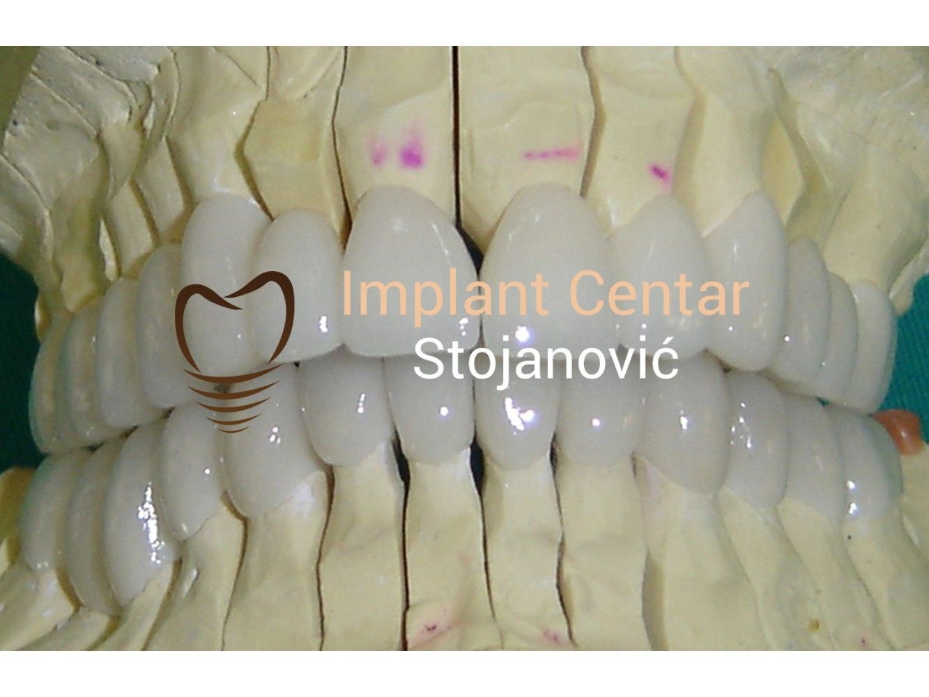 Pacijent iz Austrije, izgubio zube zbog parodontopatije. Urađeni su metalno-keramički mostovi obe vilice, a implantati su sa prirodnim zubima povezani u jednu celinu. Rad je iz 2003. godine a na kontroli 2013. godine izgleda kao da je tek urađen. Pacijent iz arhive prim. dr. Branislava Stojanovića.